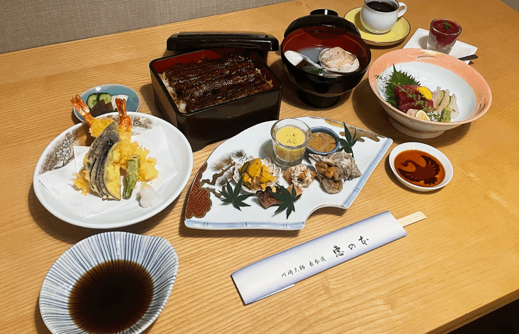 季節に合わせた旬の食材をつかった前菜や刺身、天ぷらが楽しめる鰻のコースのほか、名物の蛤が旬の季節には蛤吸や蛤鍋のコースもございます。
